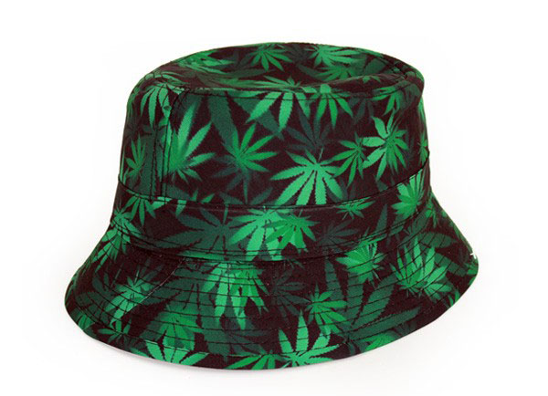 Het marihuana-symbool is een langlopende hit in de mode en daarom is de vissershoed voor veel gelegenheden geschikt als accessoire.