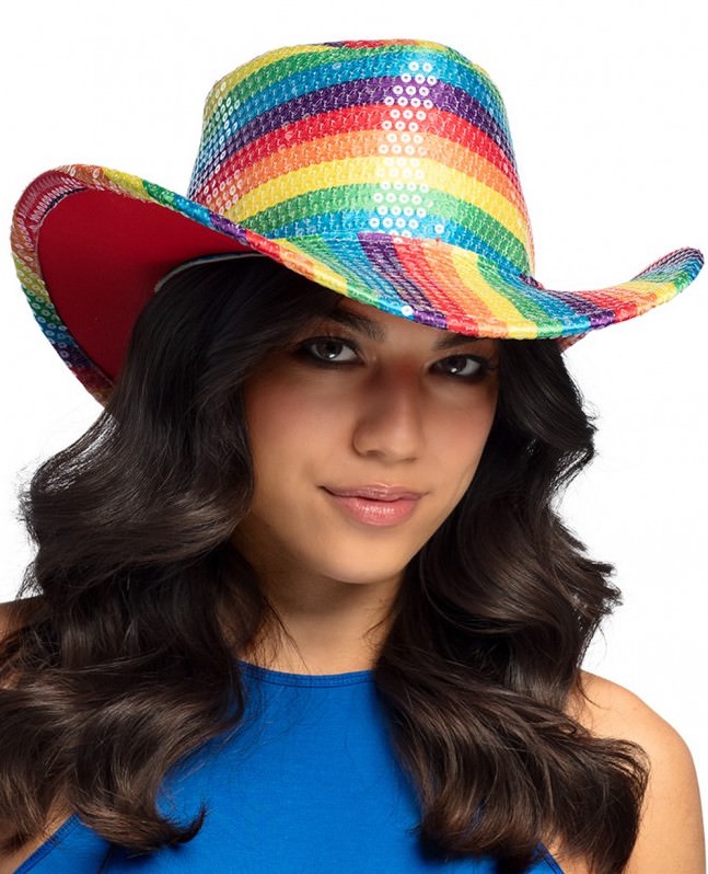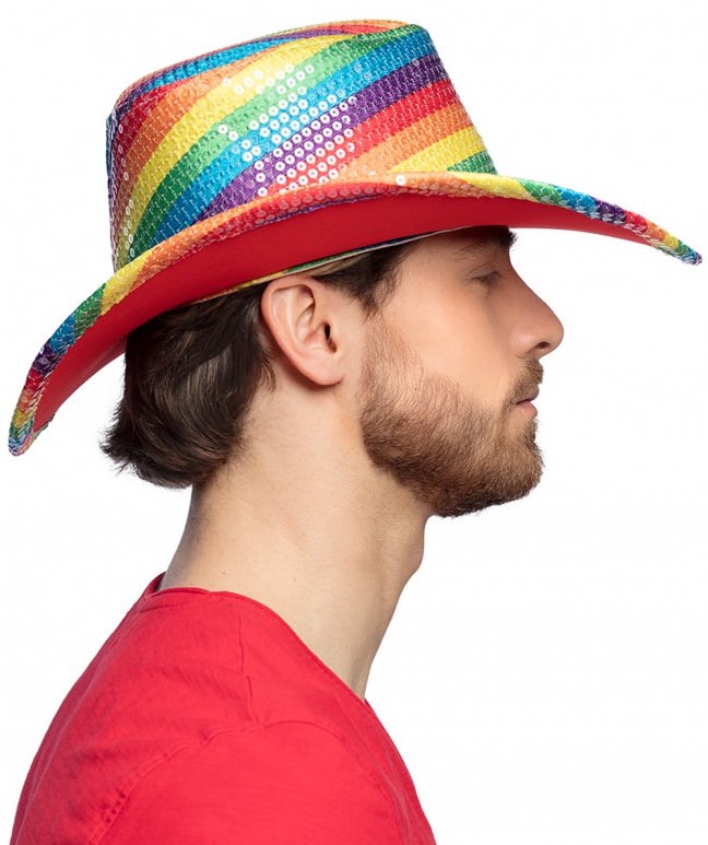 Hou je ook zo van pailletten en van cowboyhoeden? Deze vrolijke pailletten cowboyhoed in de kleuren van de regenboog past perfect binnen het Pride thema en is dan ook de ideale accessoire om een rainbow outfit helemaal compleet te maken. Deze vrolijke pride hoed is gemaakt van 50% eva, 25% pet, 25% polyester. Dit leuke model pride hoed is geschikt voor zowel mannen als vrouwen.